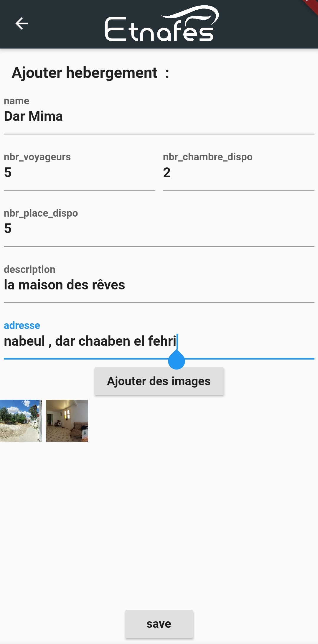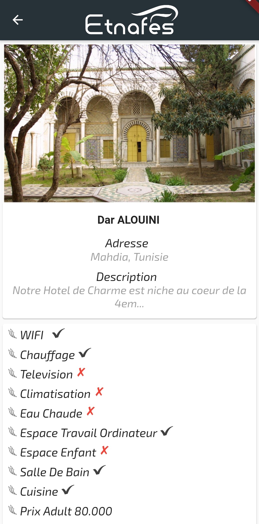 This application helps to find the best destinations in the 24 Tunisian governorates, displays points of interest tourist attractions and informs users of organized activities and visits. Our solution consists in developing a computer system composed of Mobile application allowing potential tourists to access a set data relating to the different places in Tunisia.